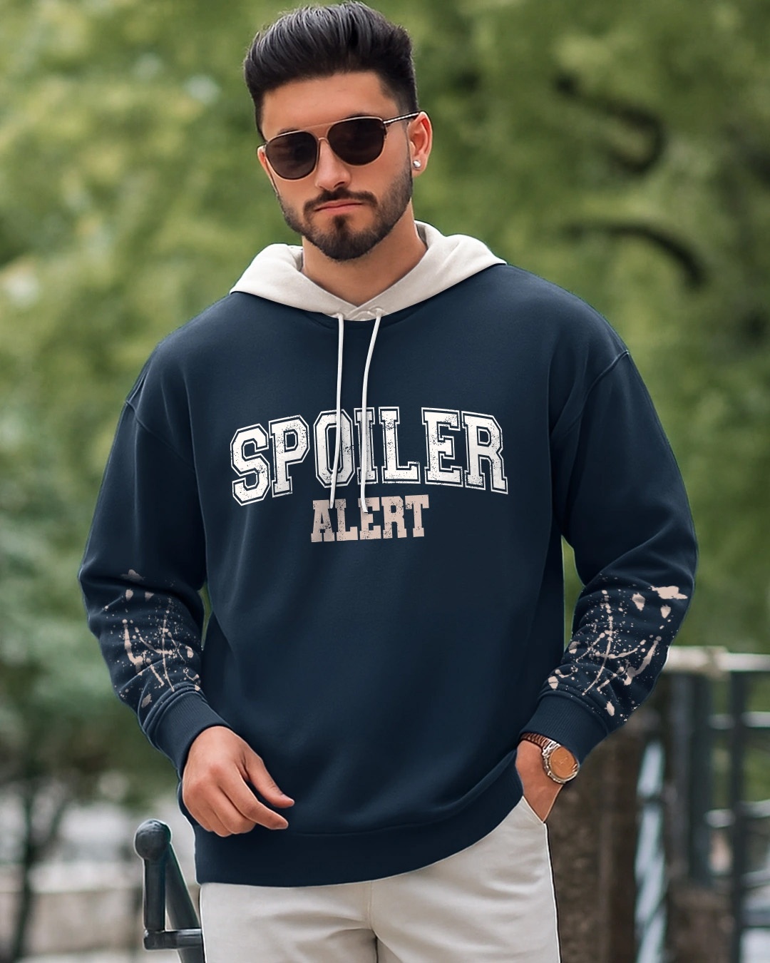 Men's Navy Blue Spoiler Alert Typography Oversized Hoodies